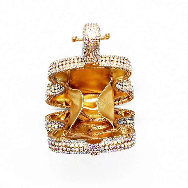 Unsere Sparkling Rhinestone Music-Inspired Clutch ist das perfekte Accessoire für Musikliebhaberinnen. Diese glamouröse Tasche hat ein einzigartiges, von Musikinstrumenten inspiriertes Design und ist komplett mit funkelnden Strasssteinen besetzt.