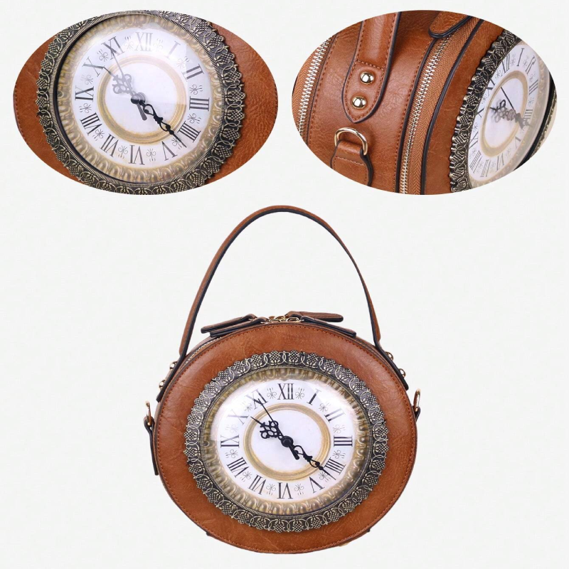 Verleihen Sie Ihrem Outfit einen Hauch von Vintage-Charme mit unserer Mini Brown PU Leather Novelty Bag. Diese einzigartige und stilvolle Handtasche hat ein kreatives Uhrendesign und ist aus hochwertigem PU-Leder gefertigt.