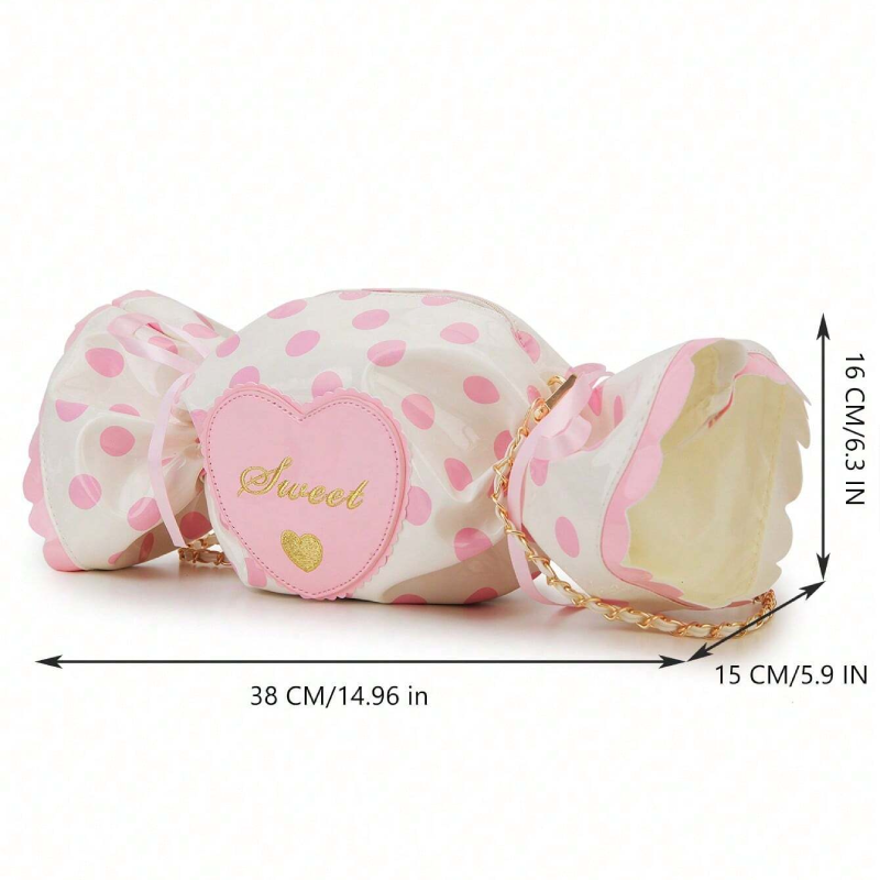 Der geräumige Innenraum bietet viel Platz für Ihre wichtigsten Dinge, während die verspielte Bonbonform für einen Hauch von Spaß sorgt. Diese Tasche eignet sich perfekt für den Alltag oder einen lässigen Ausflug und wird mit Sicherheit ein Hit sein.